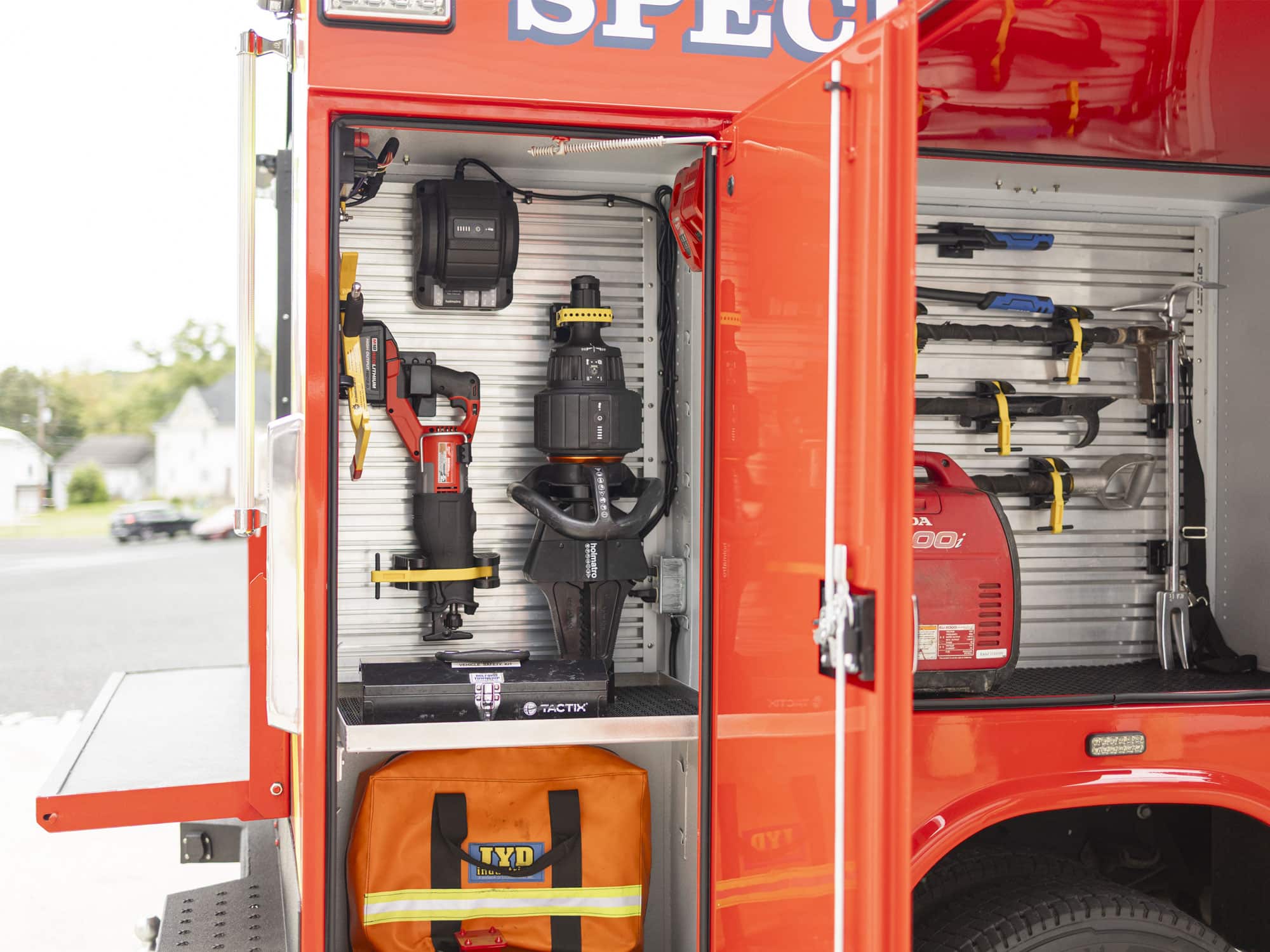 - Tool mounting system: Keeps extrication gear organized and secure with channeled panels for attaching compatible brackets and holders