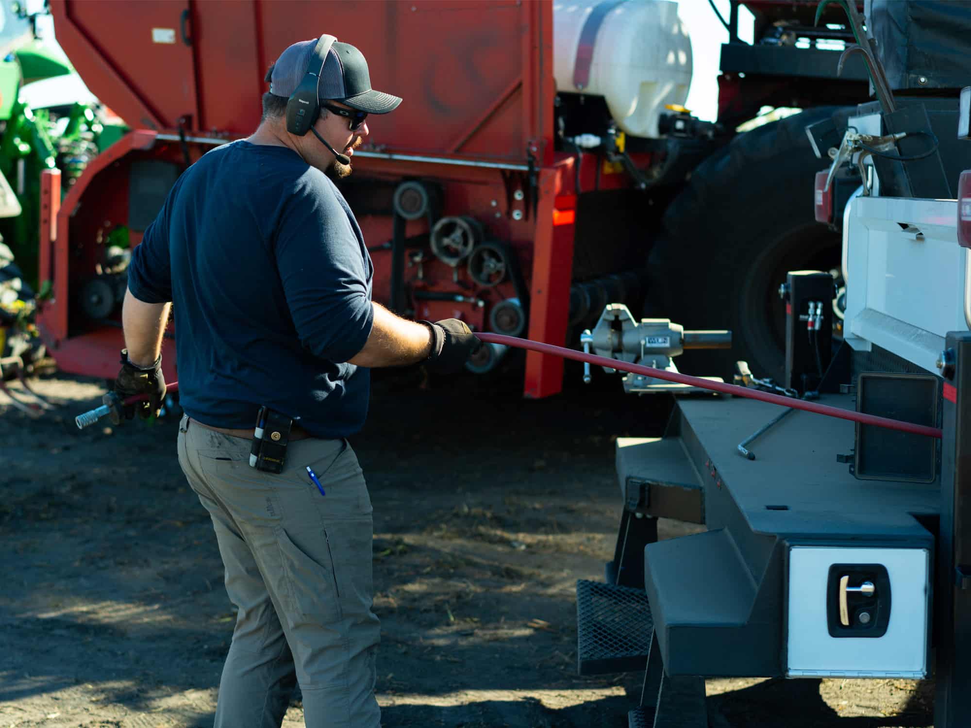 Dustin shared a few examples where his truck saved time and kept operations moving, like rebuilding an equipment hydraulic cylinder, using the crane to lift and fill seed into a planter right in the field, picking up necessary repair parts and working on semis across multiple sites.