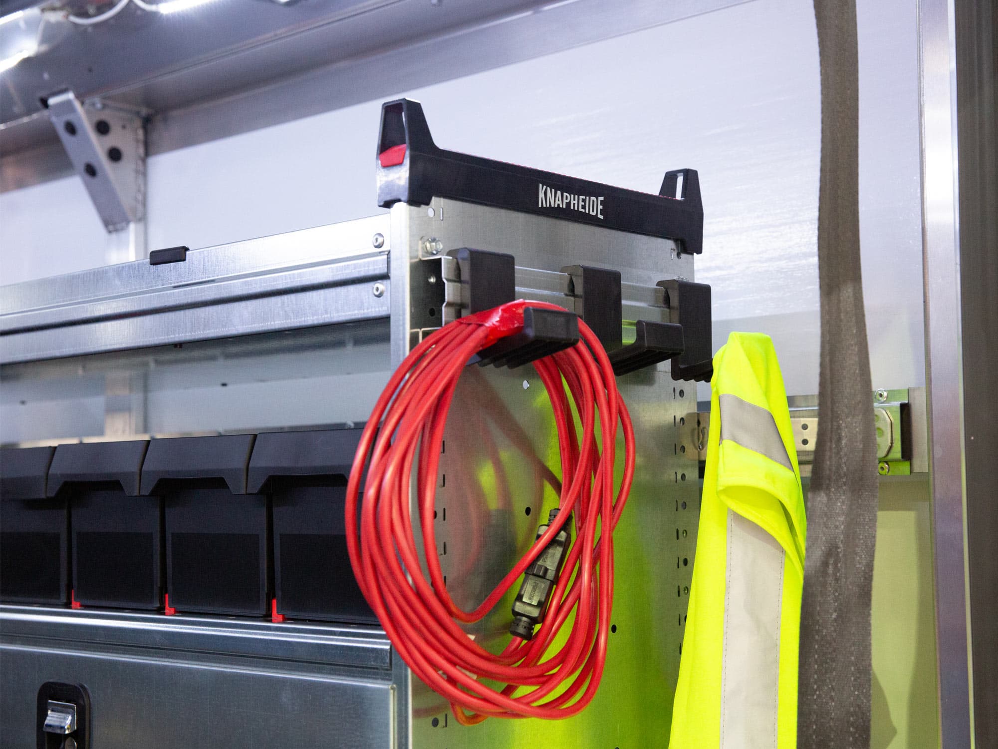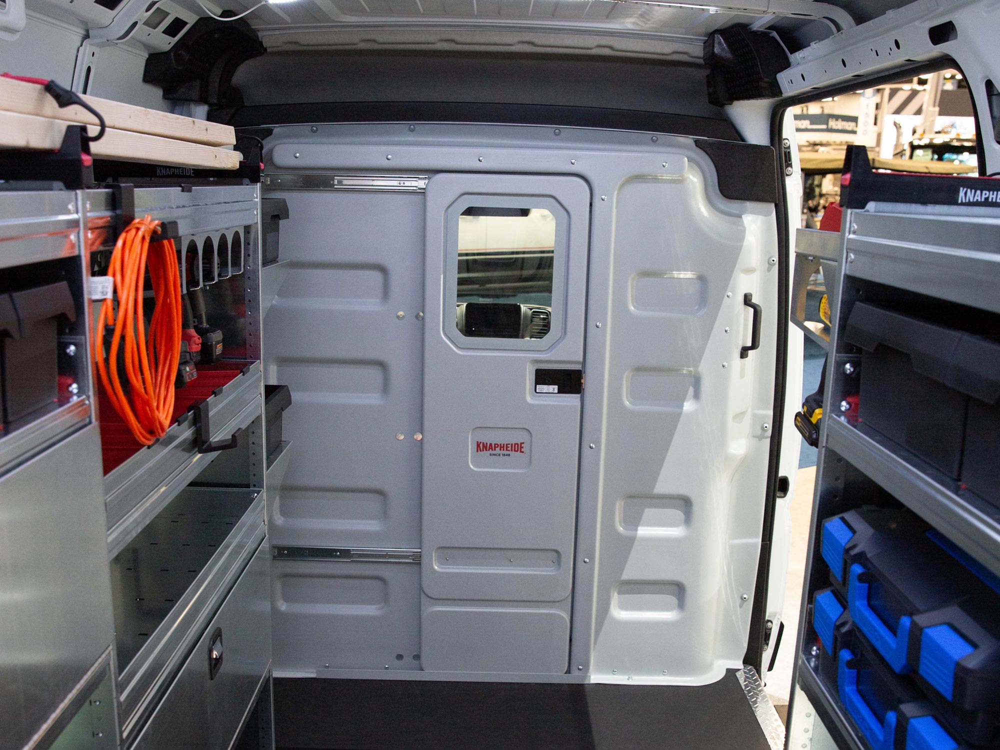 - Assortment of Accessories: KVE includes a variety of accessories designed to enhance your storage capabilities and ease of use, when it comes to your work van. Examples include our popular ABS thermoformed partitions, Knapheide-branded ladder racks, fold-down shelving, document holders, drawers, hooks, dividers and more.